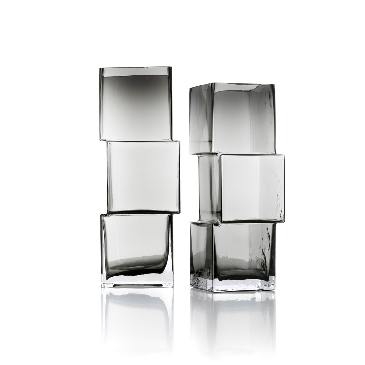 Die Rummikub Vase ist mehr als ein dekoratives Objekt. Ihre skulpturale, aus klaren Formen aufgebaute Silhouette verleiht Räumen Struktur und Ruhe zugleich. Gefertigt aus recyceltem Glas in rauchigem Dunkelgrau wirkt sie architektonisch, zeitlos und bewusst reduziert.