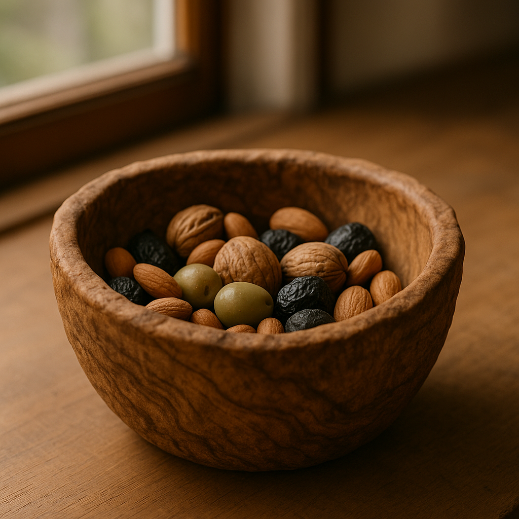 Die Olivenholz-Schale „TERRA“ ist eine handgefertigte Schale aus massivem Olivenholz, die sich vielseitig im Alltag und im Wohnbereich einsetzen lässt. Ob als Ablage für Schmuck, Schlüssel oder kleine Alltagsgegenstände, zum Servieren von Nüssen, Oliven oder Dips oder als dekoratives Element auf Tisch, Sideboard oder im Bad – sie fügt sich ruhig und unaufdringlich in unterschiedliche Umgebungen ein.