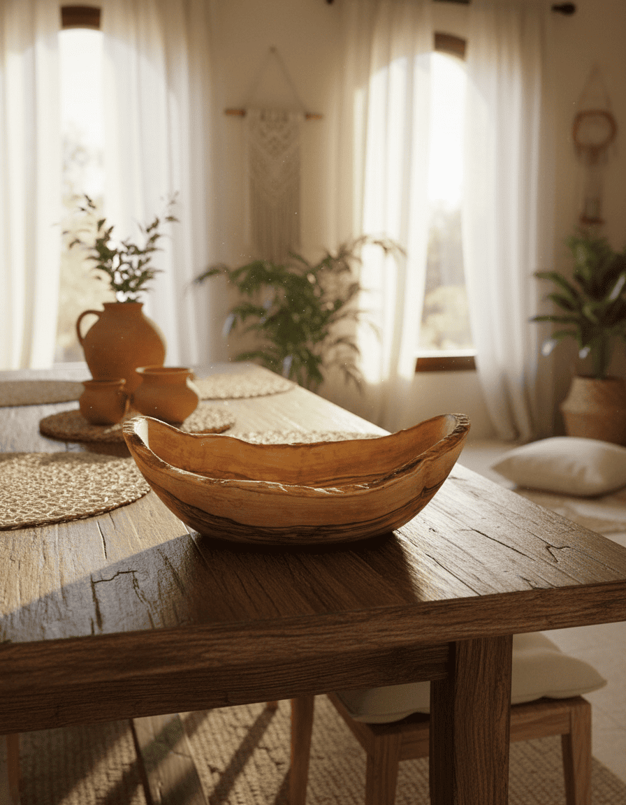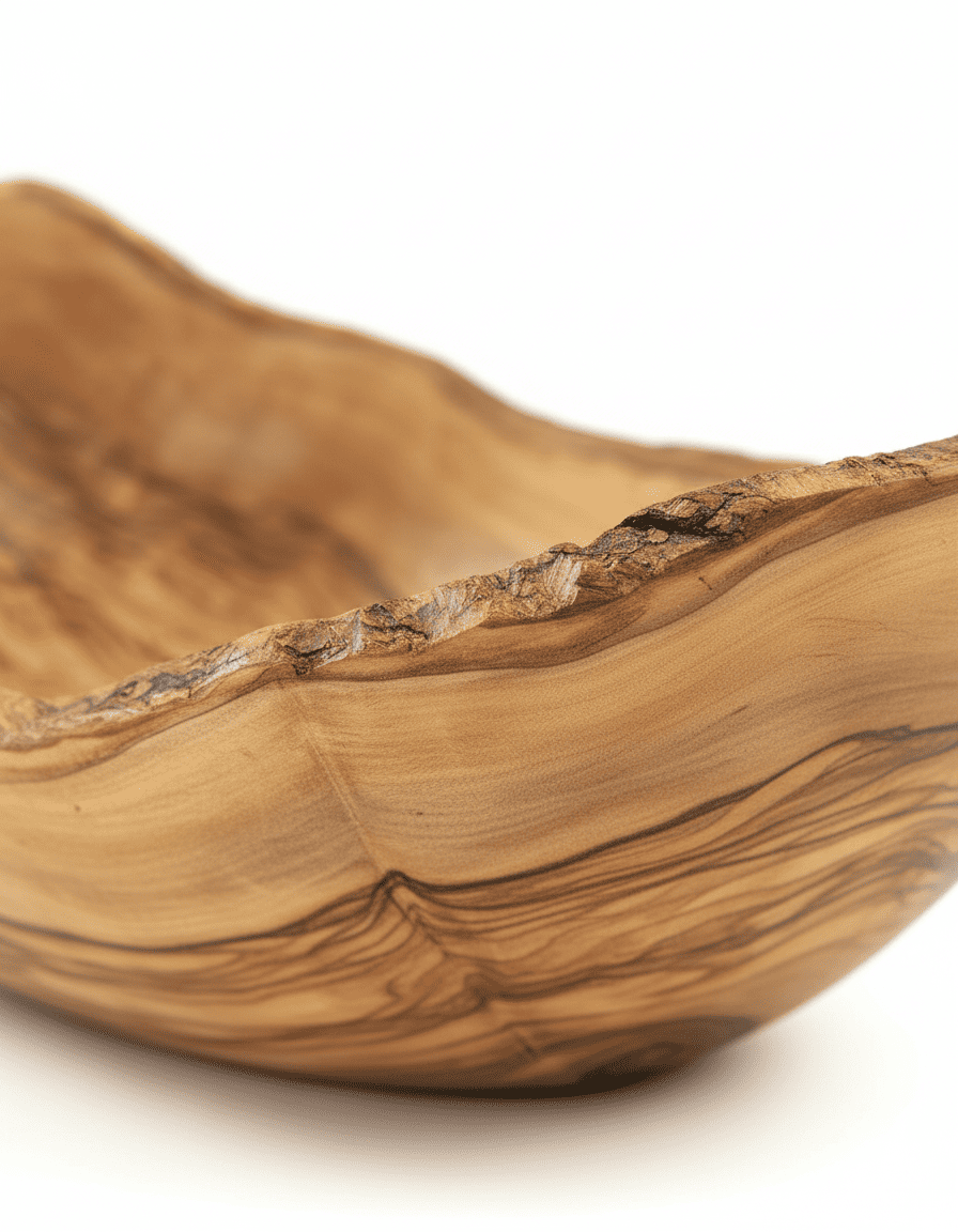Gefertigt aus massivem Olivenholz und von Hand ausgearbeitet. Die organische Form, der unregelmäßige Rand und die individuelle Maserung sind kein Makel, sondern Teil des Designs. Keine Schale gleicht der anderen.